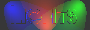 You've seen ambient and distant light. Here are three coloured spotlights on an image. You can see that the light has an elliptical shape where it hits the surface and a fuzzy edge, just like a real spotlight.