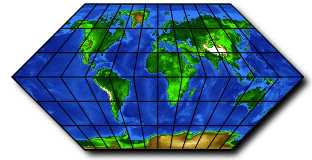 A gallery of map projections. The map consists of a graticule layer with drop-shadow effect added, a JPEG image of the world and another graticule layer.