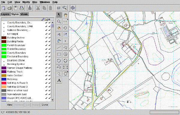 This is UK Ordnance Survey Landline-plus vector data, imported from DXF format: